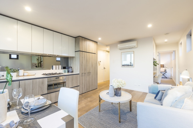 Other features include reverse-cycle heating and cooling, quality tapware and soft-closing drawers in the kitchen, secure video-intercom entry, Secure lift access & bicycle storage.