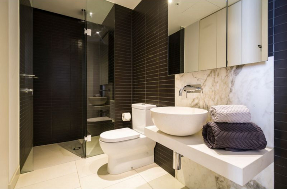 – Modern bathroom with Euro laundry